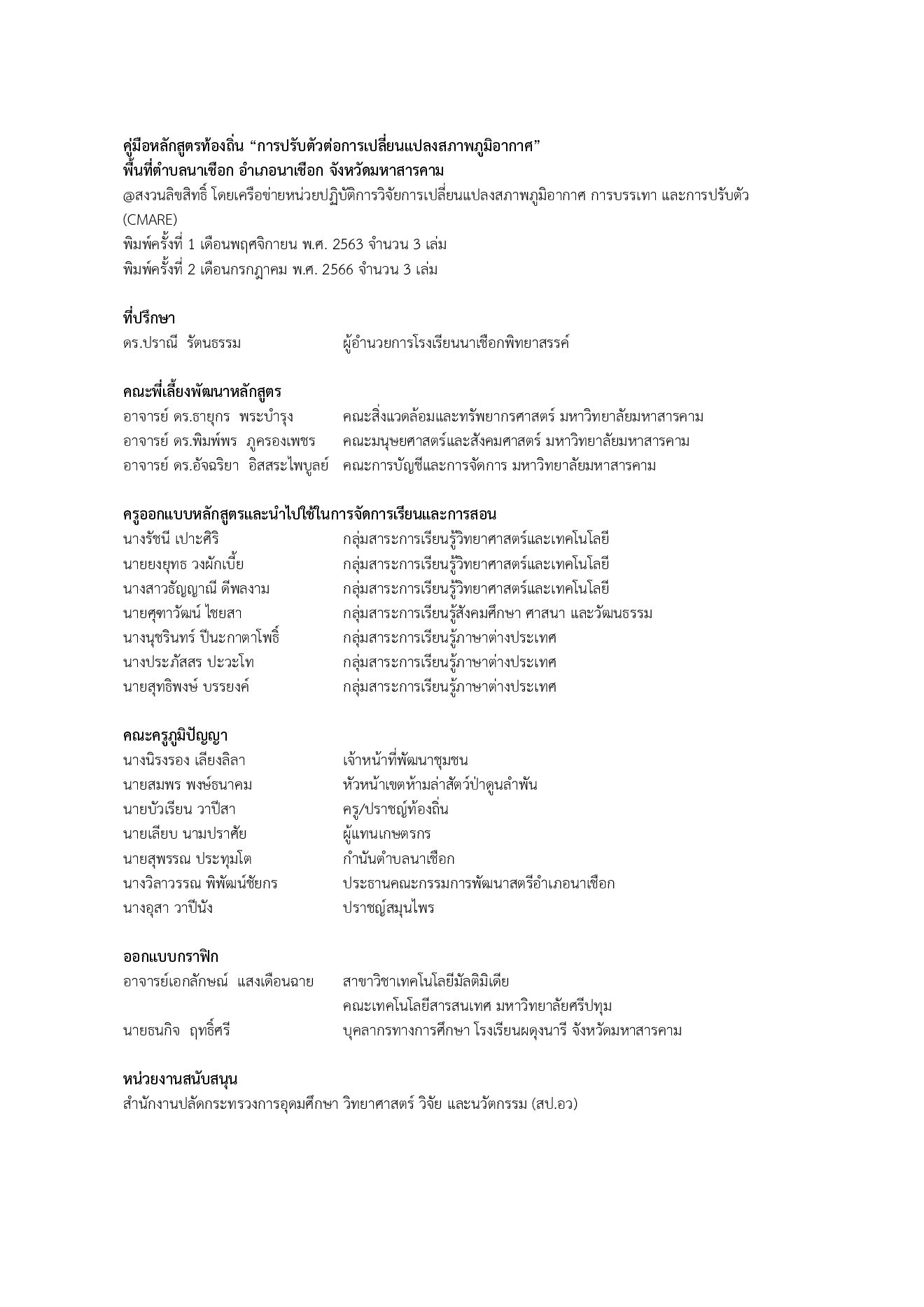 - Author : โดย คณะนักวิจัยสหวิทยาการ หน่วยปฏิบัติการวิจัยการเปลี่ยนแปลงสภาพภูมิอากาศ การบรรเทา และการปรับตัว (CMARE) คณะสิ่งแวดล้อมและทรัพยากรศาสตร์ มหาวิทยาลัยมหาสารคาม