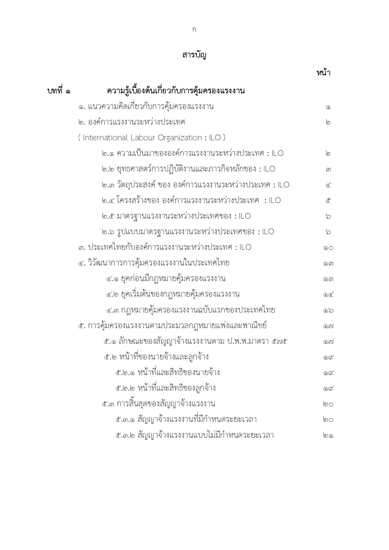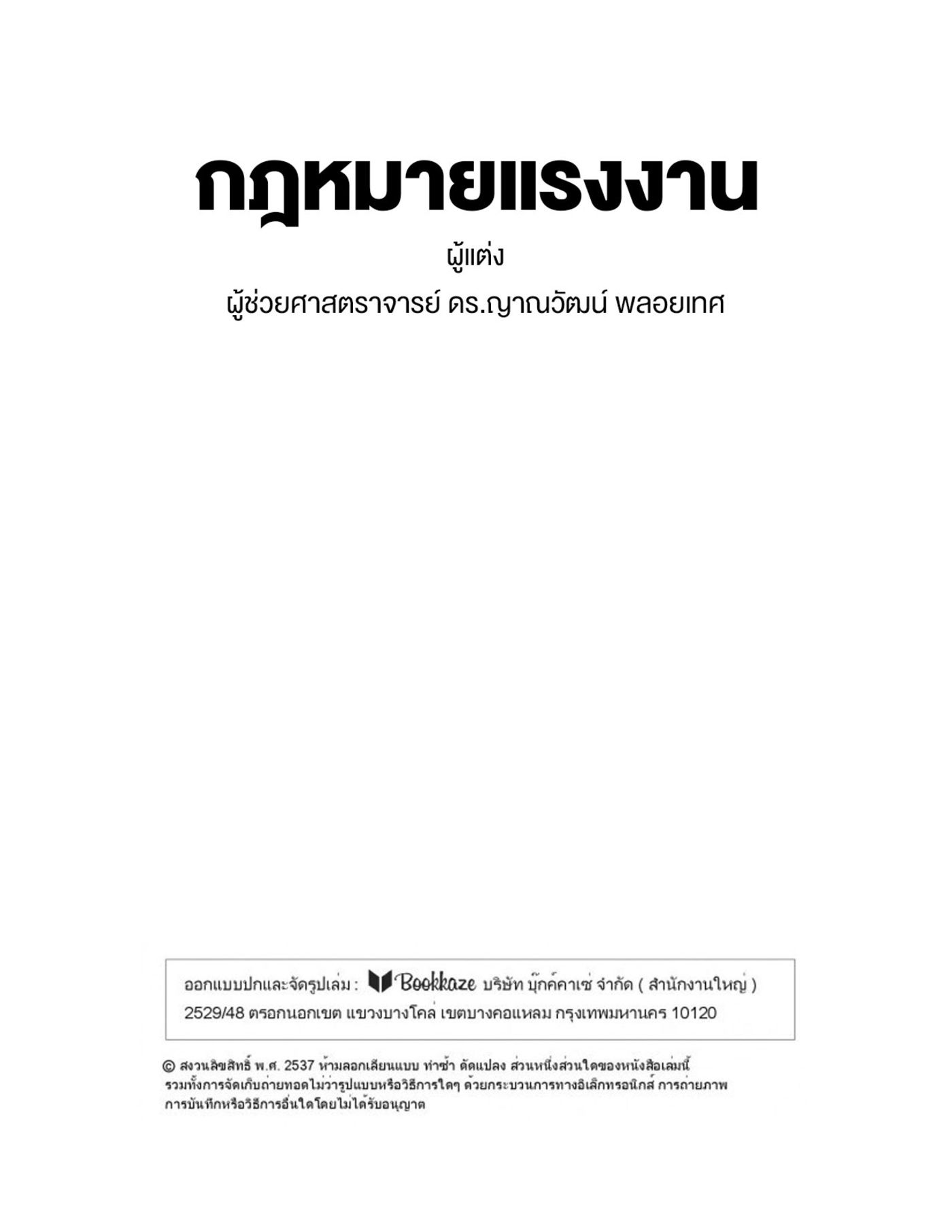 ตํารา กฎหมายแรงงาน เล่มนี้มุ่งอธิบายและวิเคราะห์กฎหมายแรงงาน 5 ฉบับหลัก ได้แก่ กฎหมายคุ้มครองแรงงาน กฎหมายเงินทดแทน กฎหมายแรงงานสัมพันธ์ กฎหมายประกันสังคม และกฎหมายจัดตั้งศาลแรงงานและวิธีพิจารณาคดีแรงงาน ซึ่งเป็นกลไกสําคัญในการคุ้มครองสิทธิ ของ ผู้ใช้แรงงานและรักษาดุลยภาพระหว่างนายจ้างกับลูกจ้าง กฎหมายแรงงานมีลักษณะเฉพาะ ที่ต้องศึกษาอย่างเป็นระบบ ทั้งในเชิงหลักการ เจตนารมณ์ และวิธีตีความตามแนวคําพิพากษาศาล ฎีกาทั่งนี้กฎหมายคุ้มครองแรงงานกําหนดมาตรฐานขั้นต่ําด้านสภาพการจ้าง เช่น เวลาทํางาน ค่าจ้าง วันหยุด และการเลิกจ้าง เพื่อคุ้มครองลูกจ้างซึ่งอยู่ในสถานะเสียเปรียบเชิงอํานาจ ขณะที่กฎหมายเงิน ทดแทนเน้นการเยียวยาผู้ประสบอันตรายจากการทํางานตามหลักความรับผิดแบบไม่มีความผิดเป็น เงื่อนไข เพื่อให้ได้รับสิทธิอย่างรวดเร็ว ด้านกฎหมายแรงงานสัมพันธ์วางโครงสร้างการรวมตัว เจรจา ต่อรอง และการระงับข้อพิพาทแรงงาน บนพื้นฐานเสรีภาพในการรวมกลุ่ม ส่วนกฎหมาย ประกันสังคมเป็นระบบสวัสดิการที่สร้างความมั่นคงแก่ผู้ประกันตนในหลายกรณี เช่น เจ็บป่วย ว่างงาน และชราภาพ รวมถึงกฎหมายจัดตั้งศาลแรงงานฯ เป็นกลไกยุติธรรมเฉพาะทาง ที่มุ่งเน้น ความรวดเร็ว ยืดหยุ่น และความเป็นธรรมในการพิจารณาคดีแรงงาน