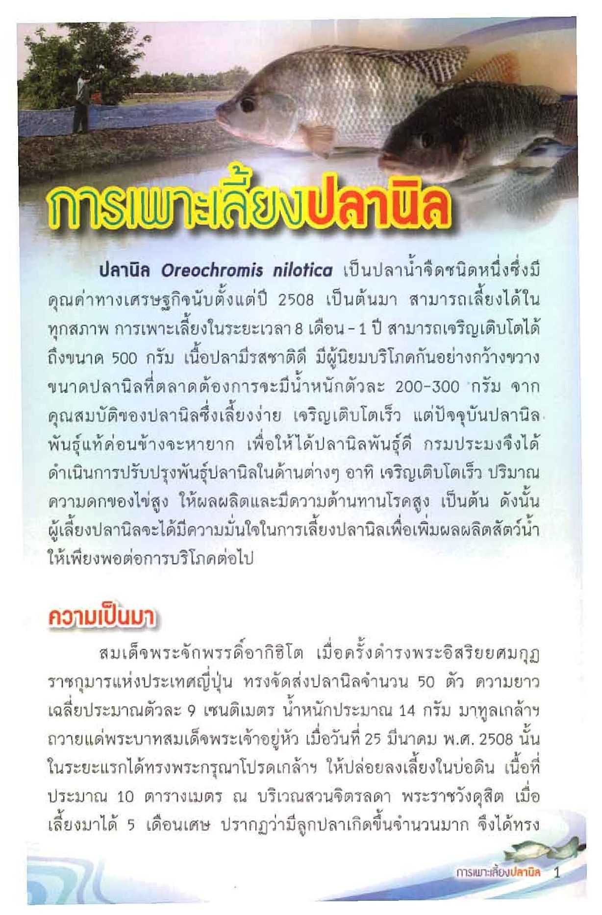 ผู้เลี้ยงปลานิลจะได้มีความมั่นใจในการเลี้ยงปลานิลเพื่อเพิ่มผลผลิตสัตว์น้ำ