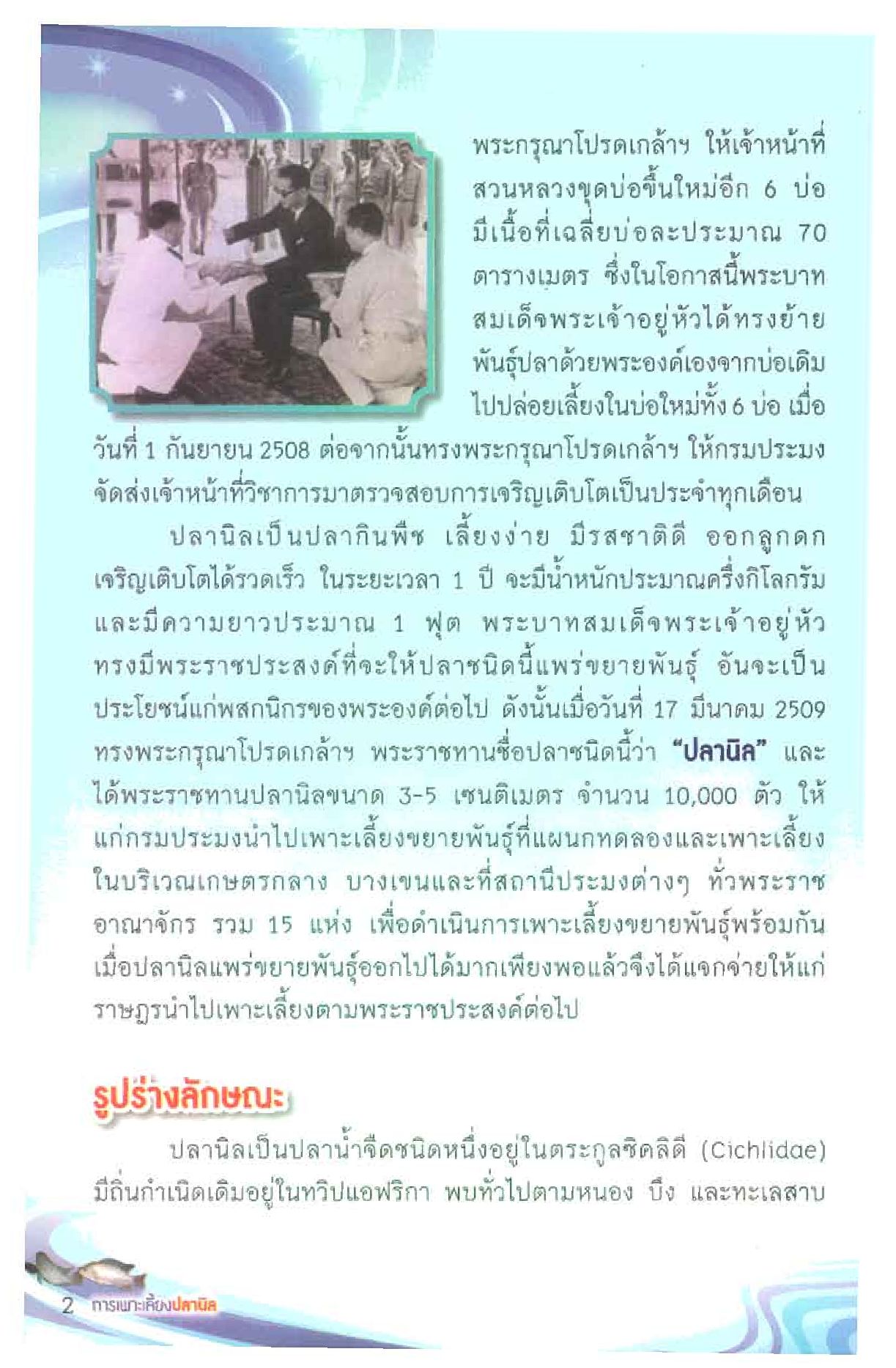 คุณสมบัติของปลานิลซึ่งเลี้ยงง่าย เจริญเติบโตเร็ว แต่ปัจจุบันปลานิล