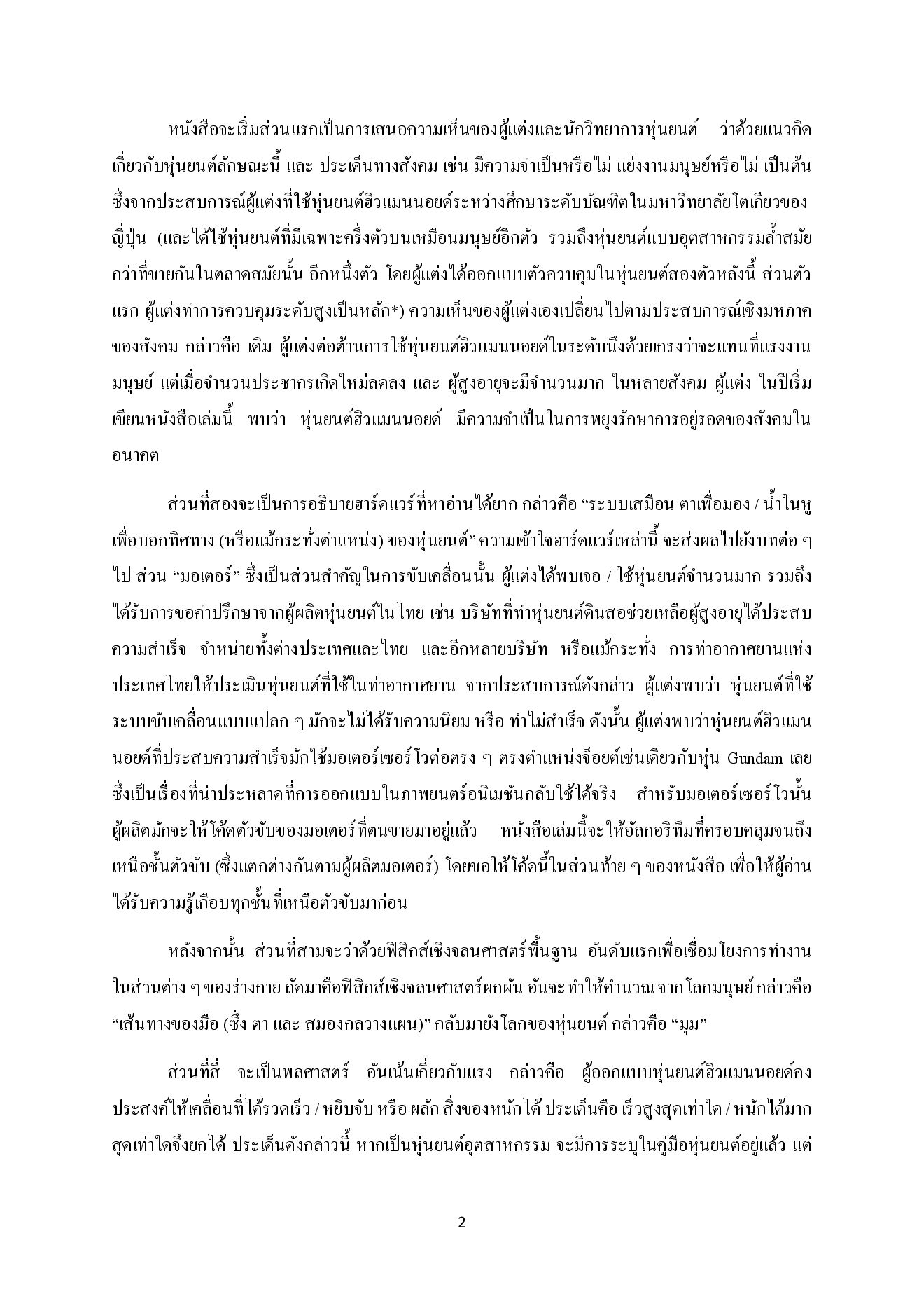 Humanoid Robot หรือหุ่นยนต์ฮิวแมนนอยด์ คือหุ่นยนต์เคลื่อนไหวคล้ายมนุษย์นั้นเองโดยโครงสร้างของหุ่นยนต์จะถูกออกแบบมาจากร่างกายของมนุษย์ ซึ่งโดยทั่วไป จะมีส่วนประกอบของหัวลำตัว 2 แขน 2 ขา และอื่นๆ ซึ่งหุ่นยนต์ฮิวแมนนอยด์บางตัวอาจจะมีใบหน้า ที่ประกอบไปด้วยตา และปากอีกด้วยเพื่อให้การออกแบบดูคล้ายมนุษย์มากขึ้น(โดยมักเรียกว่า Android หรือแอนดรอยด์)“ซึ่งหนังสือจะเน้น การทำระบบตา การเคลื่อนหุ่น การทำมือแบบ Soft roboticsตลอดจนให้ข้อมูล การคาดเดาความรู้สึกมนุษย์จากภาพใบหน้า”