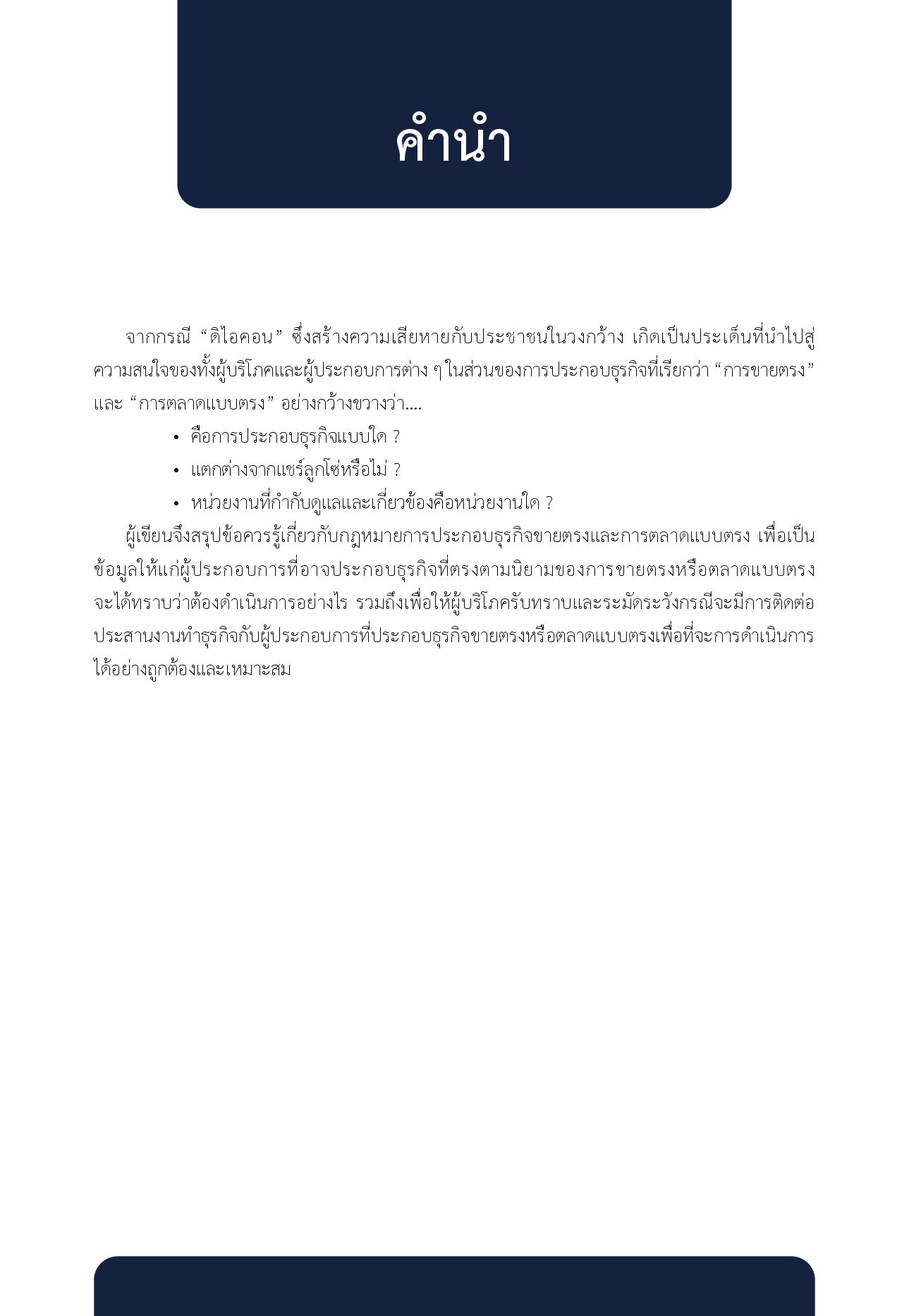 บทสรุปกฎหมายธุรกิจ การประกอบธุรกิจขายตรงและการตลาดแบบตรง