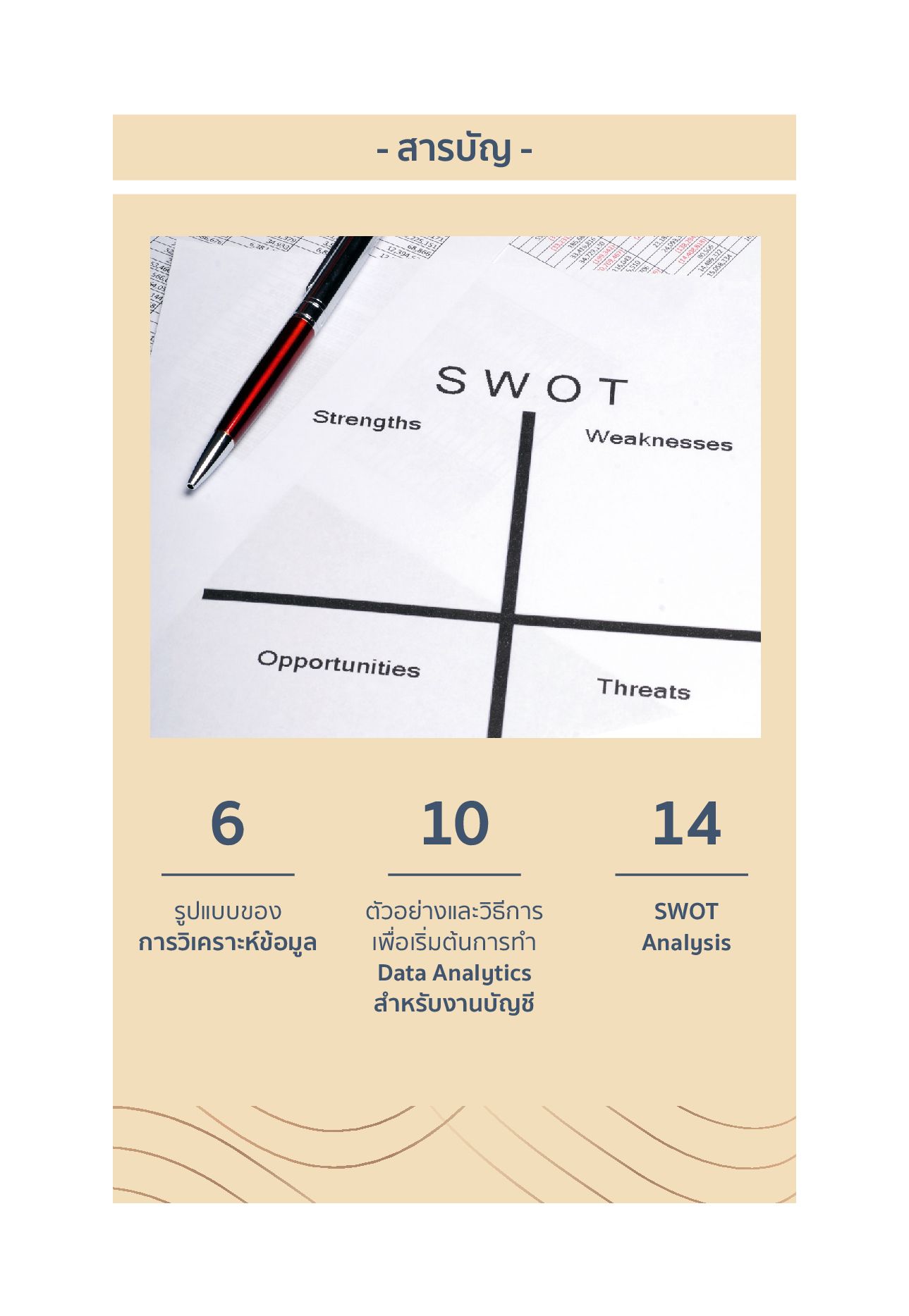 หนังสือเล่มนี้แนะนำแนวทางปฏิบัติ Data Analytics สำหรับงานบัญชี พร้อมตัวอย่าง เพื่อให้นักบัญชีสามารถวิเคราะห์รายงานทางการเงินได้อย่างลึกซึ้ง และใช้เครื่องมืออย่าง SWOT Analysis ร่วมด้วย เพื่อเข้าใจความสัมพันธ์ของข้อมูลได้อย่างมีประสิทธิภาพ