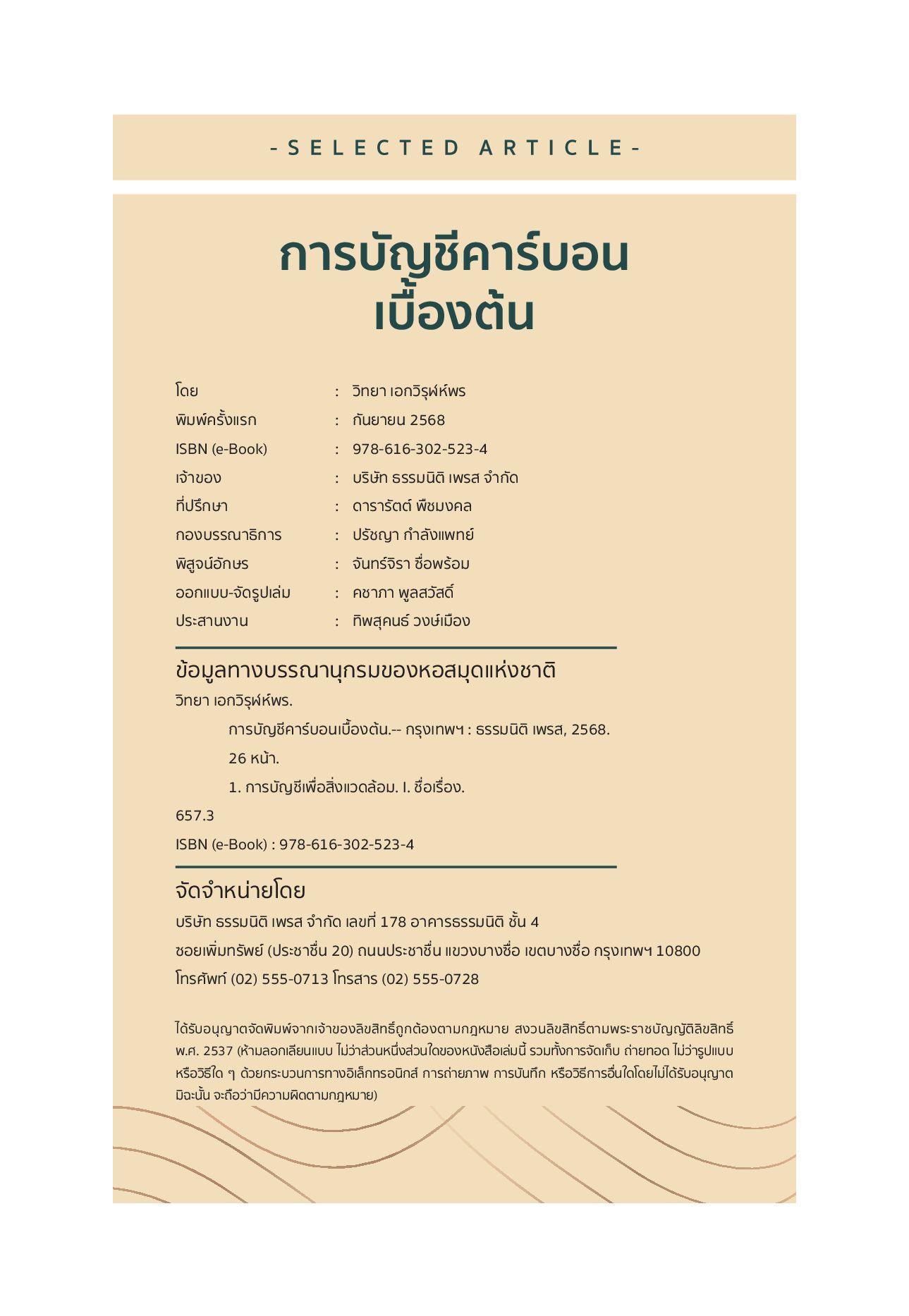 แนวคิด ESG (Environmental, Social, and Governance - สิ่งแวดล้อม สังคม และธรรมาภิบาล) ได้กลายมาเป็นกรอบการทำงานในโลกธุรกิจที่นักลงทุนและมีผู้ส่วนได้เสียใช้ประเมินความยั่งยืนขององค์กร ควบคู่ไปพร้อมๆ กับ “การบัญชีคาร์บอน” (Carbon Accounting) ถูกใช้เป็นเครื่องมือเพื่อชี้วัดเชิงปริมาณการปล่อยก๊าซเรือนกระจกของธุรกิจ