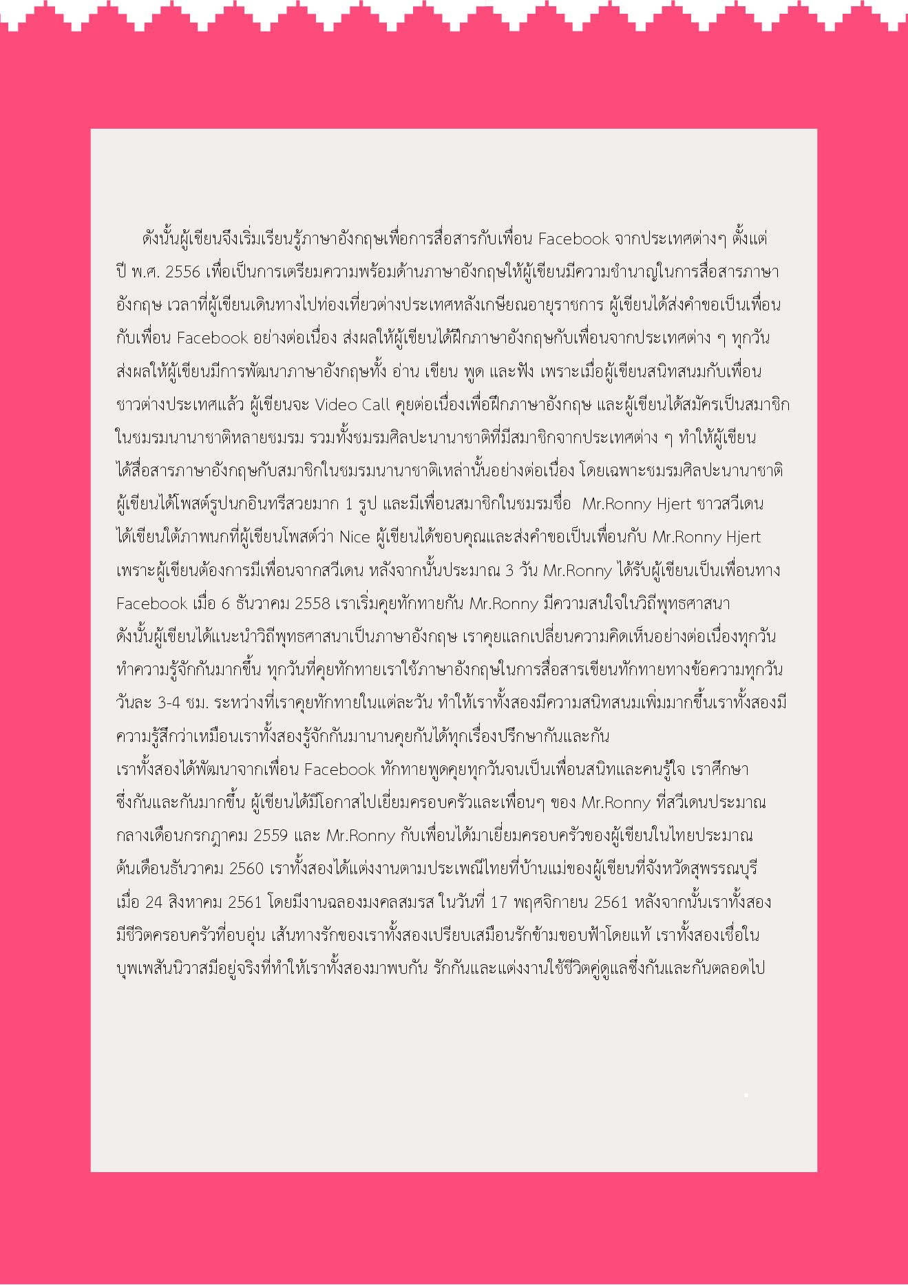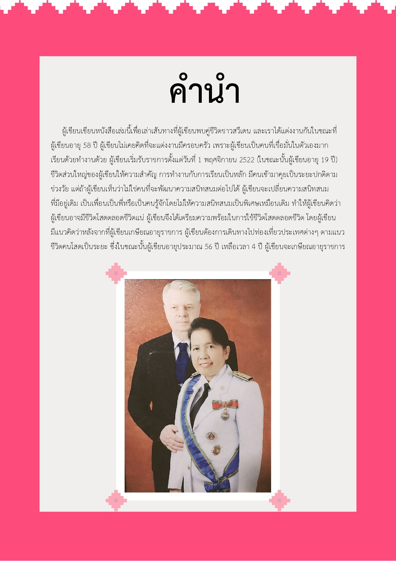 ผู้เขียนเขียนหนังสือเล่มนี้เพื่อเล่าเส้นทางที่ผู้เขียนพบคู่ชีวิตชาวสวีเดน และเราได้แต่งงานกันในขณะที่