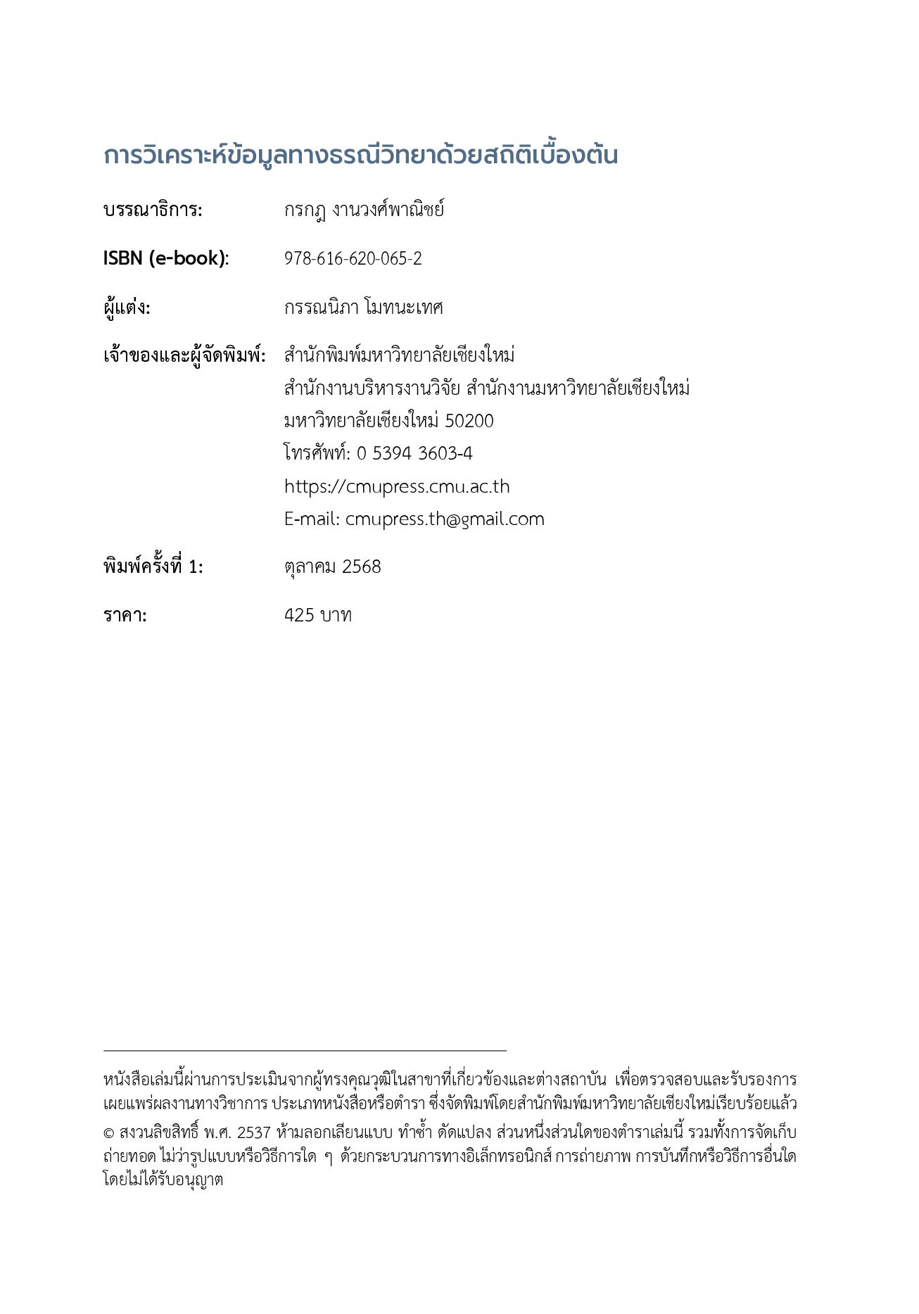 - สำนักพิมพ์ : CHIANG MAI UNIVERSITY PRESS