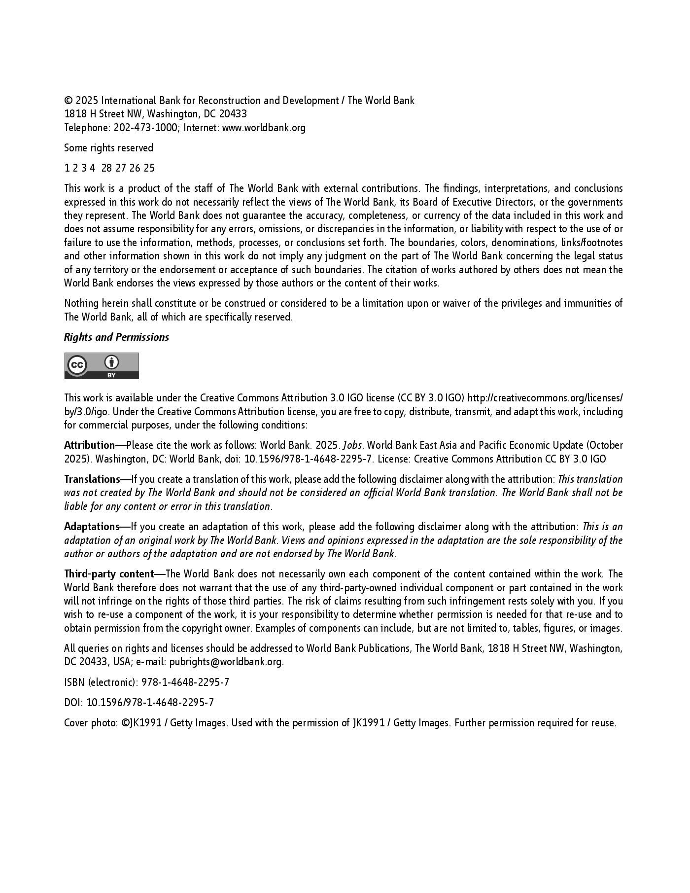 Publication: World Bank East Asia and Pacific Economic Update, October 2025: Jobs