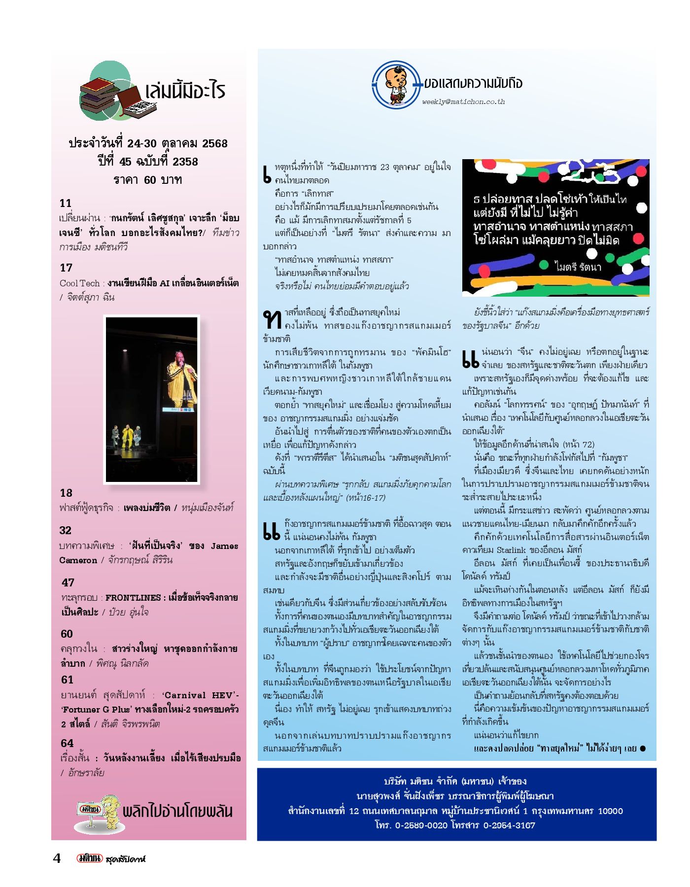 มติชนสุดสัปดาห์ ฉบับ 2358 (วันที่ 24-30 ตุลาคม 2568)