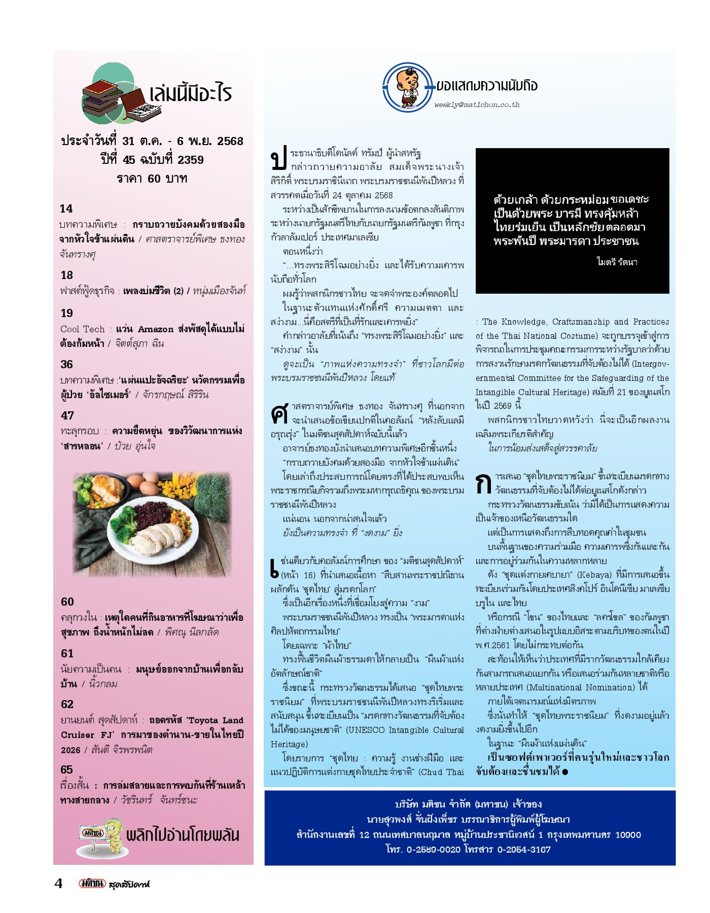 มติชนสุดสัปดาห์ ฉบับ 2359 (วันที่ 31 ตุลาคม-6 พฤศจิกายน 2568)