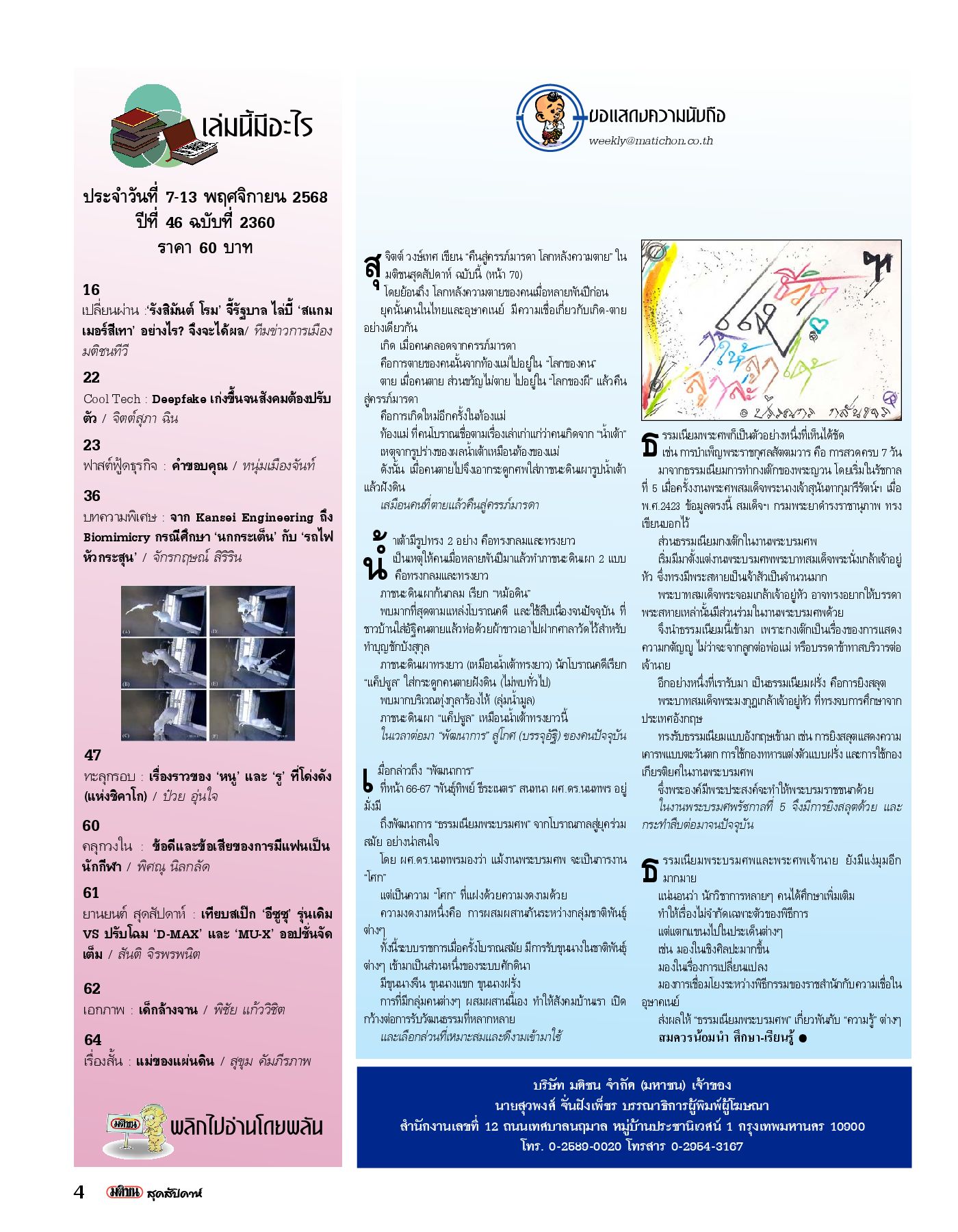 มติชนสุดสัปดาห์ ฉบับ 2360 (วันที่ 7-13 พฤศจิกายน 2568)