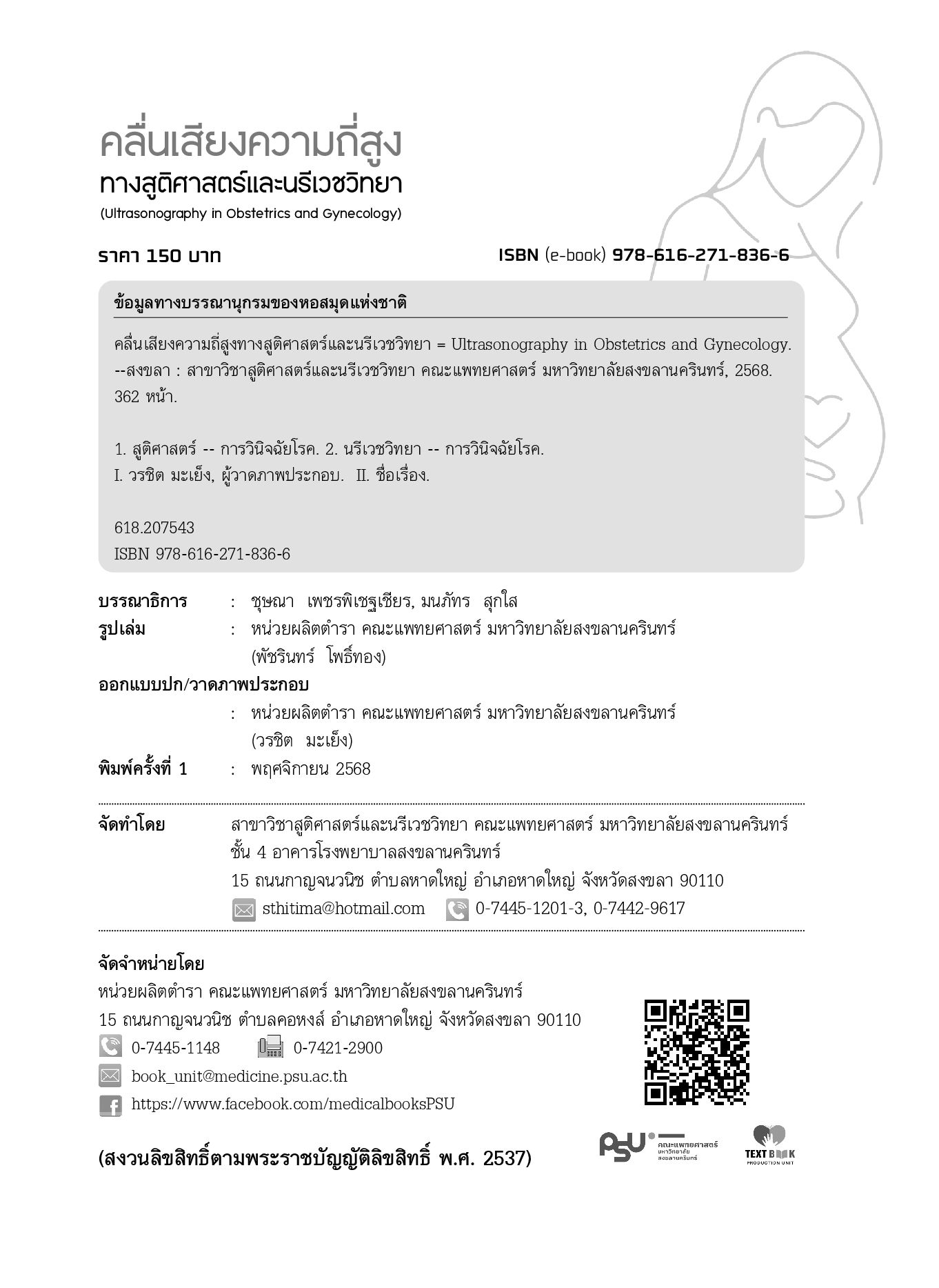 - สำนักพิมพ์ : หน่วยผลิตตํารา คณะแพทยศาสตร์ มหาวิทยาลัยสงขลานครินทร์