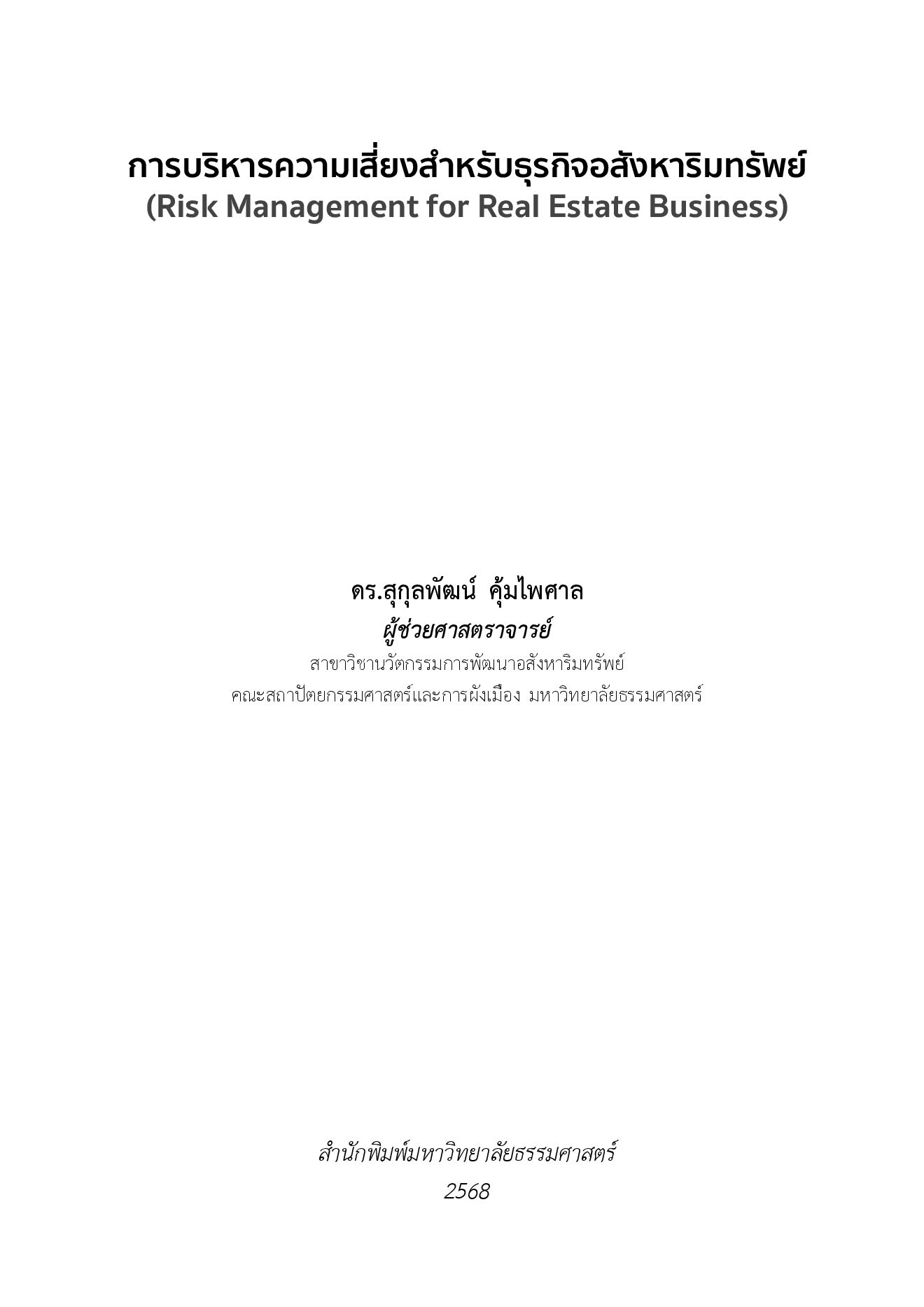 การลงทุนอสังหาริมทรัพย์เต็มไปด้วยความซับซ้อนและองค์ประกอบของ "ความเสี่ยง" ที่มองไม่เห็น! หนังสือเล่มนี้คือคู่มือฉบับสมบูรณ์ที่เปิดเผยกลไกการบริหารความเสี่ยงตั้งแต่ต้นจนจบ ตั้งแต่การระบุ (Risk Identification) การประเมิน (Risk Assessment) ไปจนถึงการตอบสนองความเสี่ยง (Risk Response) อย่างมีกลยุทธ์ เจาะลึกความเสี่ยงสำคัญที่กระทบผู้ประกอบการ ผู้พัฒนาโครงการ และผู้บริโภค เช่น ปัญหาเงินทุน สภาวะเศรษฐกิจ และข้อพิพาทแรงงาน เพื่อให้คุณ "รู้เท่าทัน" ทุกปัจจัย, หลีกเลี่ยงผลกระทบเชิงลบ, และสร้างความมั่นคงในโครงการอสังหาริมทรัพย์ของคุณได้อย่างยั่งยืน