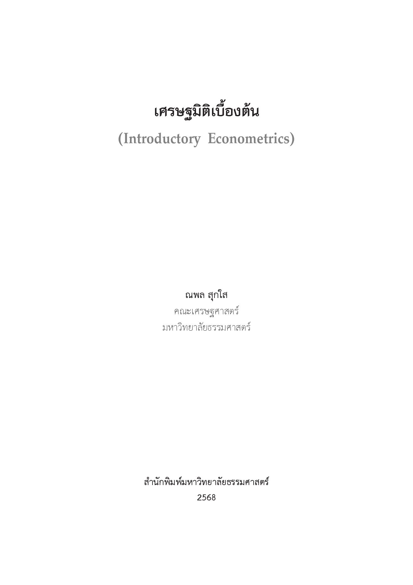 เศรษฐมิติเบื้องต้น (Introductory Econometrics)" เสนอแนวทางการประยุกต์สถิติและคณิตศาสตร์วิเคราะห์ปรากฏการณ์เศรษฐกิจจริง ตำราเล่มนี้ครอบคลุมตั้งแต่แบบจำลองถดถอยอย่างง่ายจนถึงหลายตัวแปร พร้อมตัวอย่างและแบบฝึกหัดท้ายบท ช่วยให้นักศึกษาระดับปริญญาตรีเข้าใจและทบทวนได้ง่าย พร้อมข้อมูลสถิติสำหรับฝึกใช้โปรแกรมเศรษฐมิติอย่างครบครัน