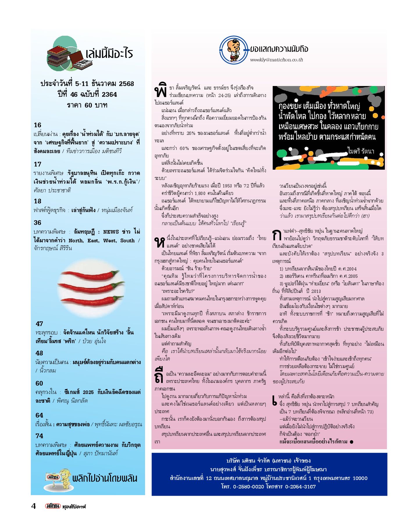 นิตยสาร มติชนสุดสัปดาห์ ฉบับประจําวันที่ 5-11 ธ.ค. 2568 ปีที่ 46 ฉบับที่ 234