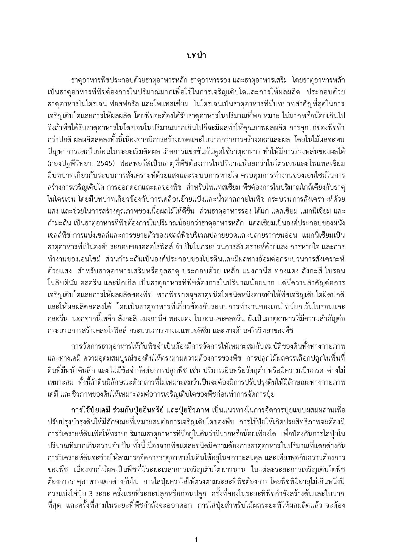 ปุ๋ยเป็นปัจจัยที่สําคัญต่อการเจริญเติบโตและการให้ผลผลิตของพืชซึ่งพืชแต่ละชนิดหรือแต่ละพนัธุ์มี ความต้องการธาตุอาหารที่แตกต่างกัน นอกจากนี้สมบัติของดินทั้งกายภาพ เคมี และระดับธาตุอาหารในดิน ในแต่ละพื้นที่ล้วนส่งผลต่อปริมาณการใช้ปุ๋ย ดังนั้นจึงจําเป็นต้องวิเคราะห์ดินเพื่อทราบถึงแนวทางการจัดการ ดินและปุ๋ยอย่างเหมาะสม