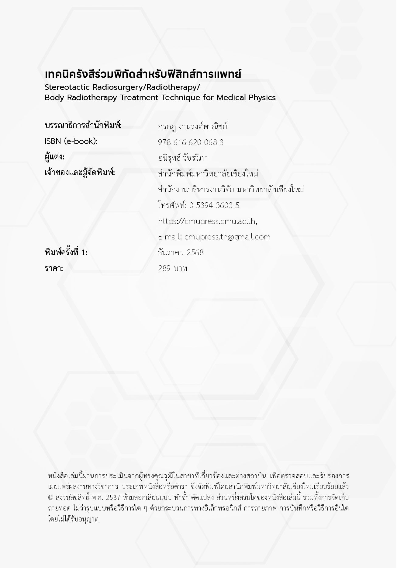 หนังสือ "เทคนิครังสีร่วมพิกัดสำหรับฟิสิกส์การแพทย์" เล่มนี้ เป็นผลงานที่สะท้อนถึง