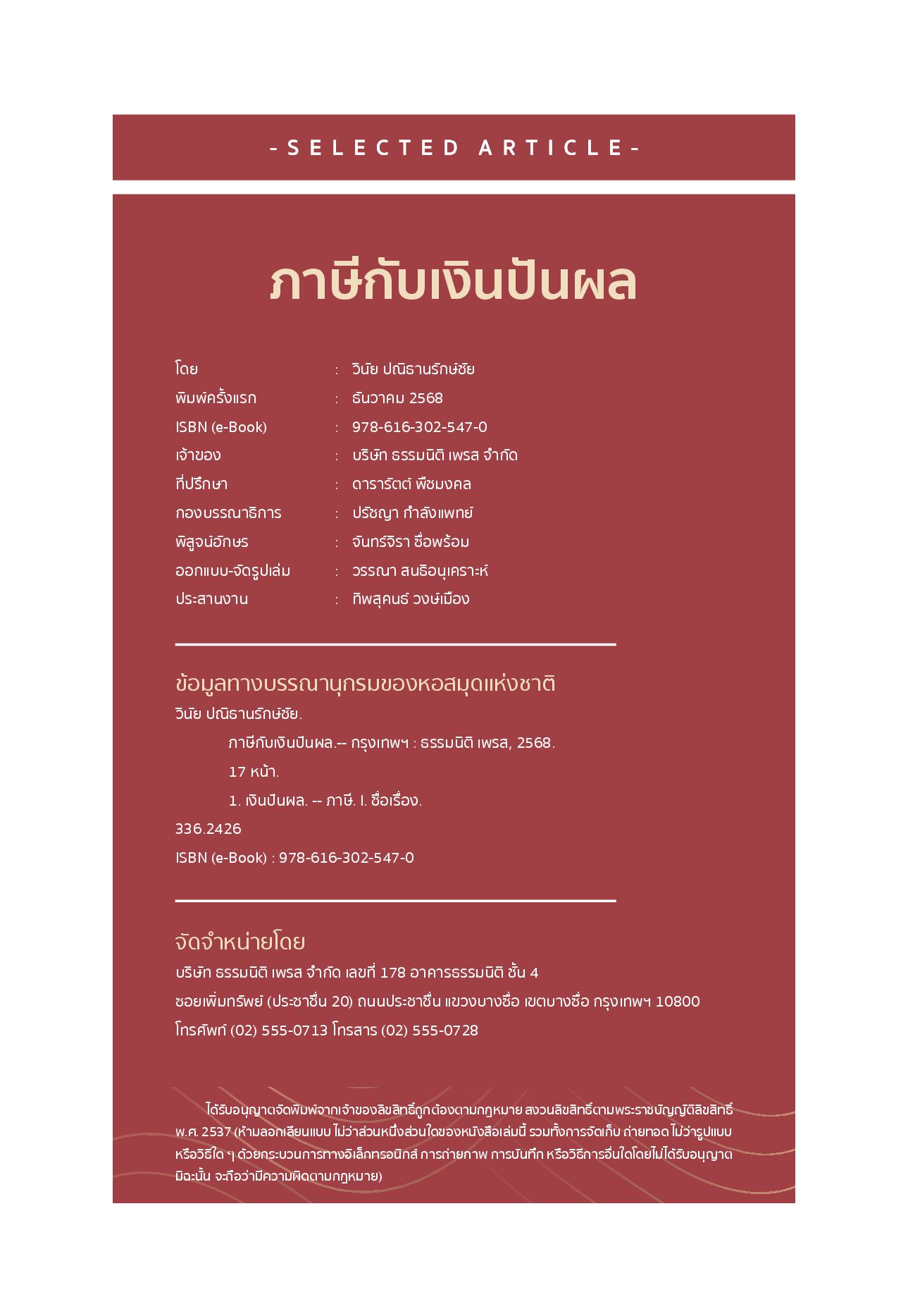 ไม่นำไปรวมคำนวณภาษี (คำนวณภาษีหัก ณ ที่จ่าย)