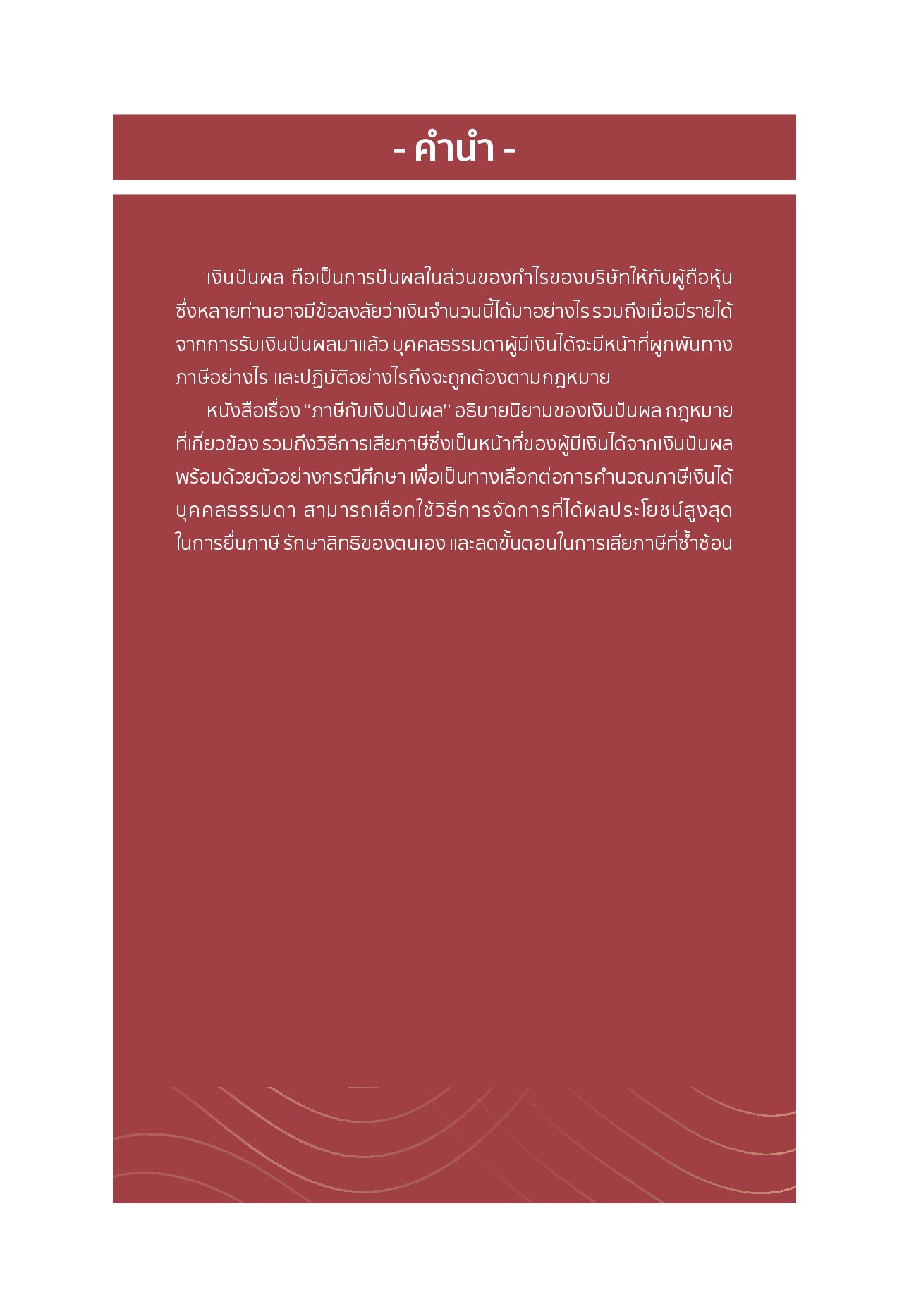 ค่าตอบแทนที่บริษัทจ่ายให้แก่ผู้ถือหุ้น หรือ “เงินปันผล” (Divided) จะแบ่งตามสัดส่วนของผู้ที่มีบัญชีรายชื่อผู้ถือหุ้น ตามประมวลรัษฎากรนั้น เงินปันผลเข้าข่ายเป็นรายได้ที่ไม่สามารถหักเป็นค่าใช้จ่าย