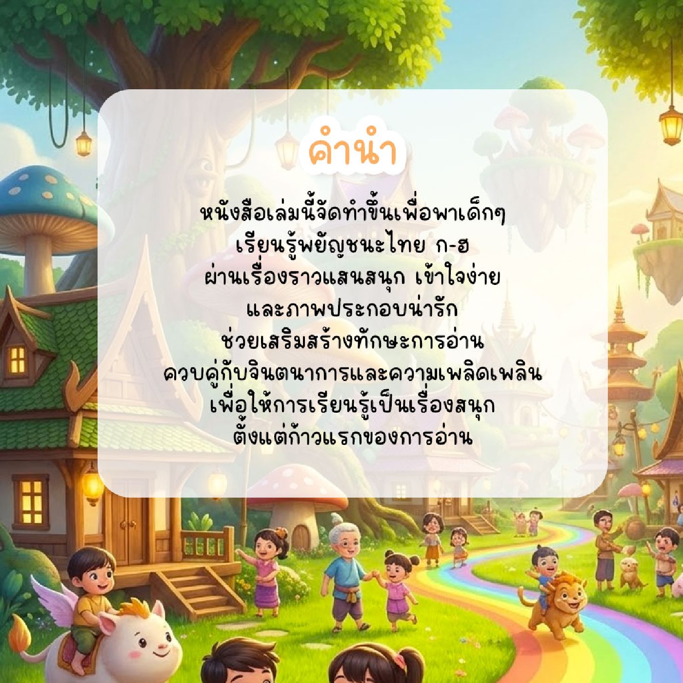 หนังสือเล่มนี้จัดทำขึ้นเพื่อพาเด็กๆเรียนรู้พยัญชนะไทย ก-ฮผ่านเรื่องราวแสนสนุก เข้าใจง่ายและภาพประกอบน่ารักช่วยเสริมสร้างทักษะการอ่านควบคู่กับจินตนาการและความเพลิดเพลินเพื่อให้การเรียนรู้เป็นเรื่องสนุกตั้งแต่ก้าวแรกของการอ่าน