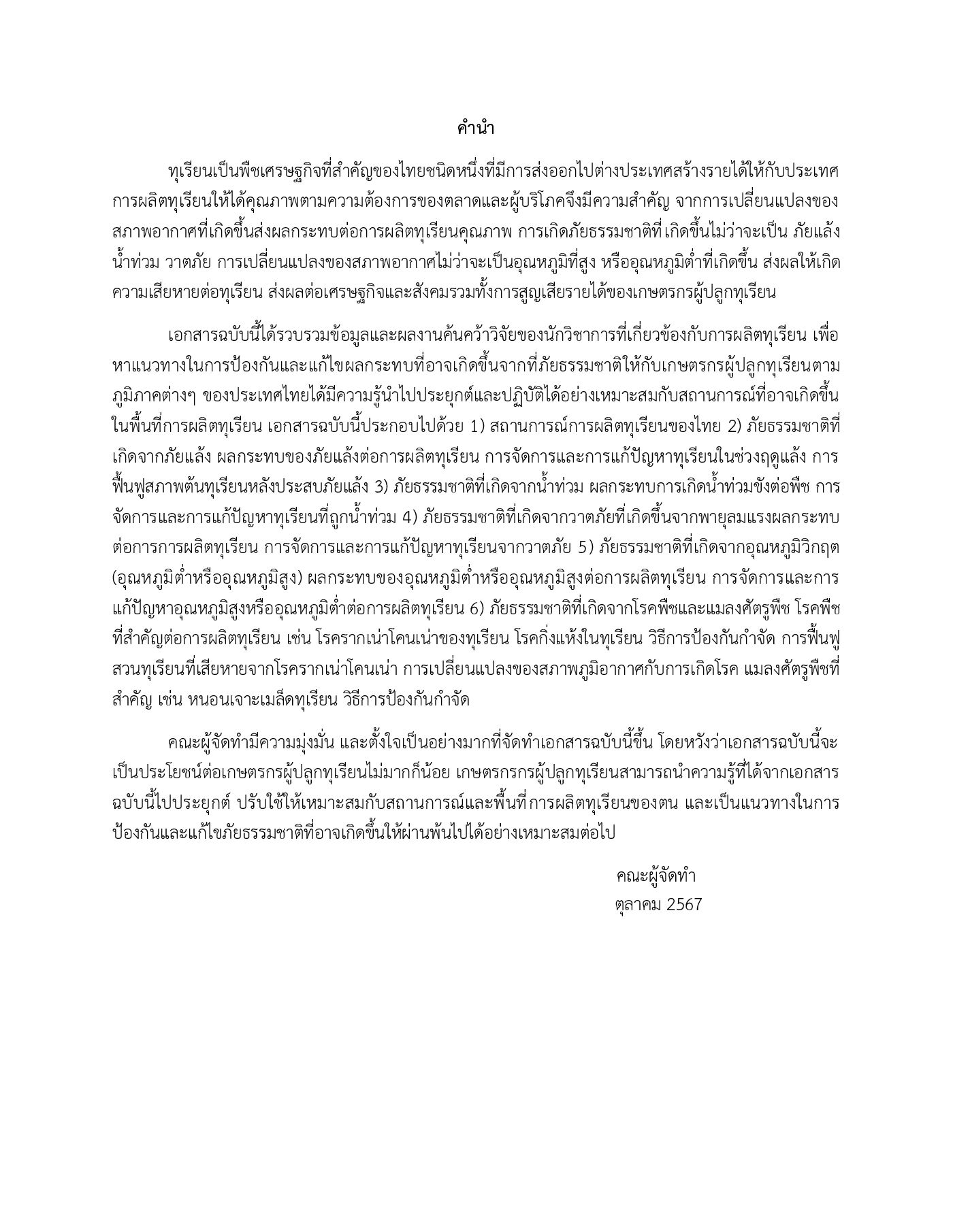 การจัดการการผลิตทุเรียนเพื่อรองรับภัยธรรมชาติ
