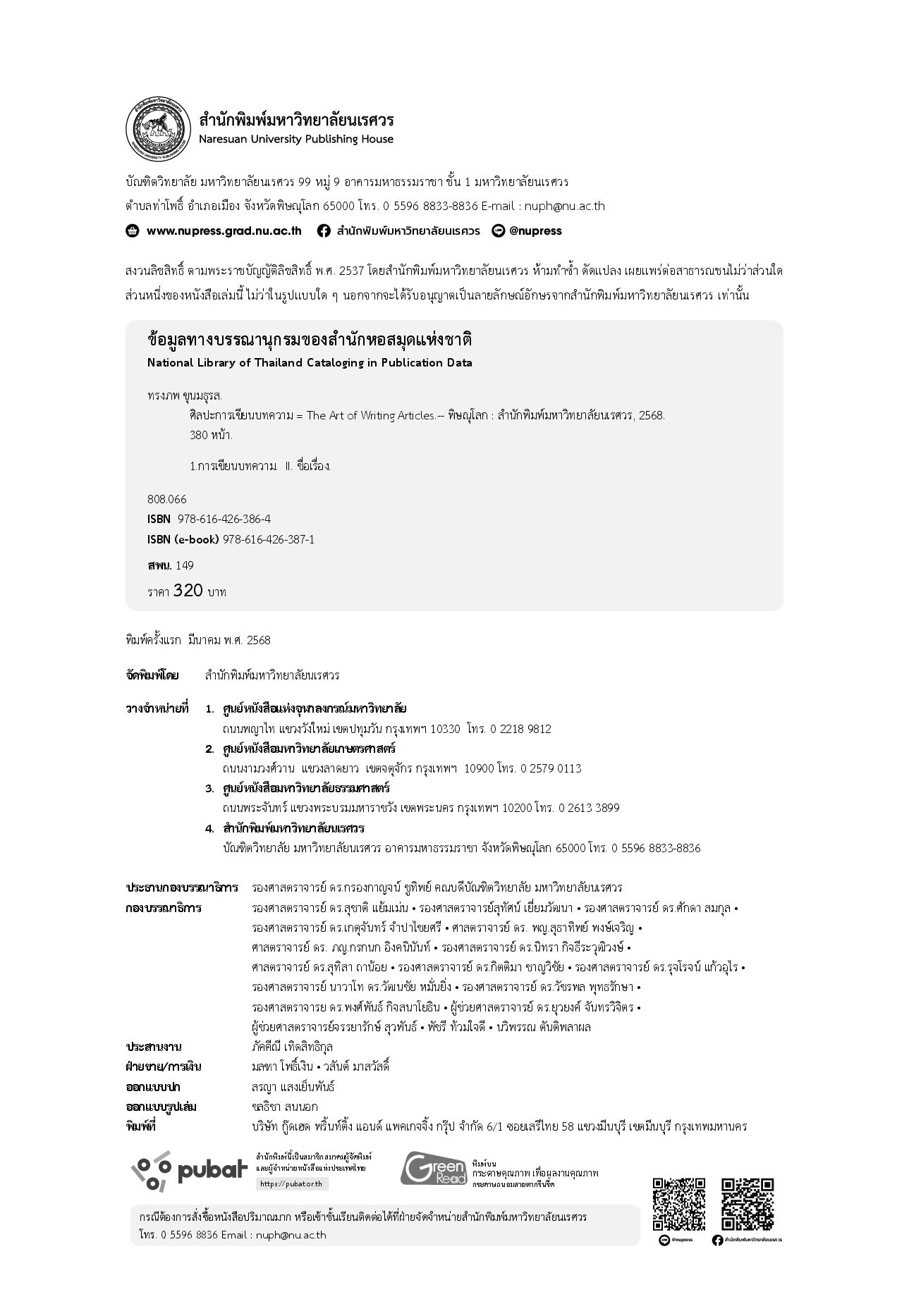 - สำนักพิมพ์ : Naresuan University Publishing House