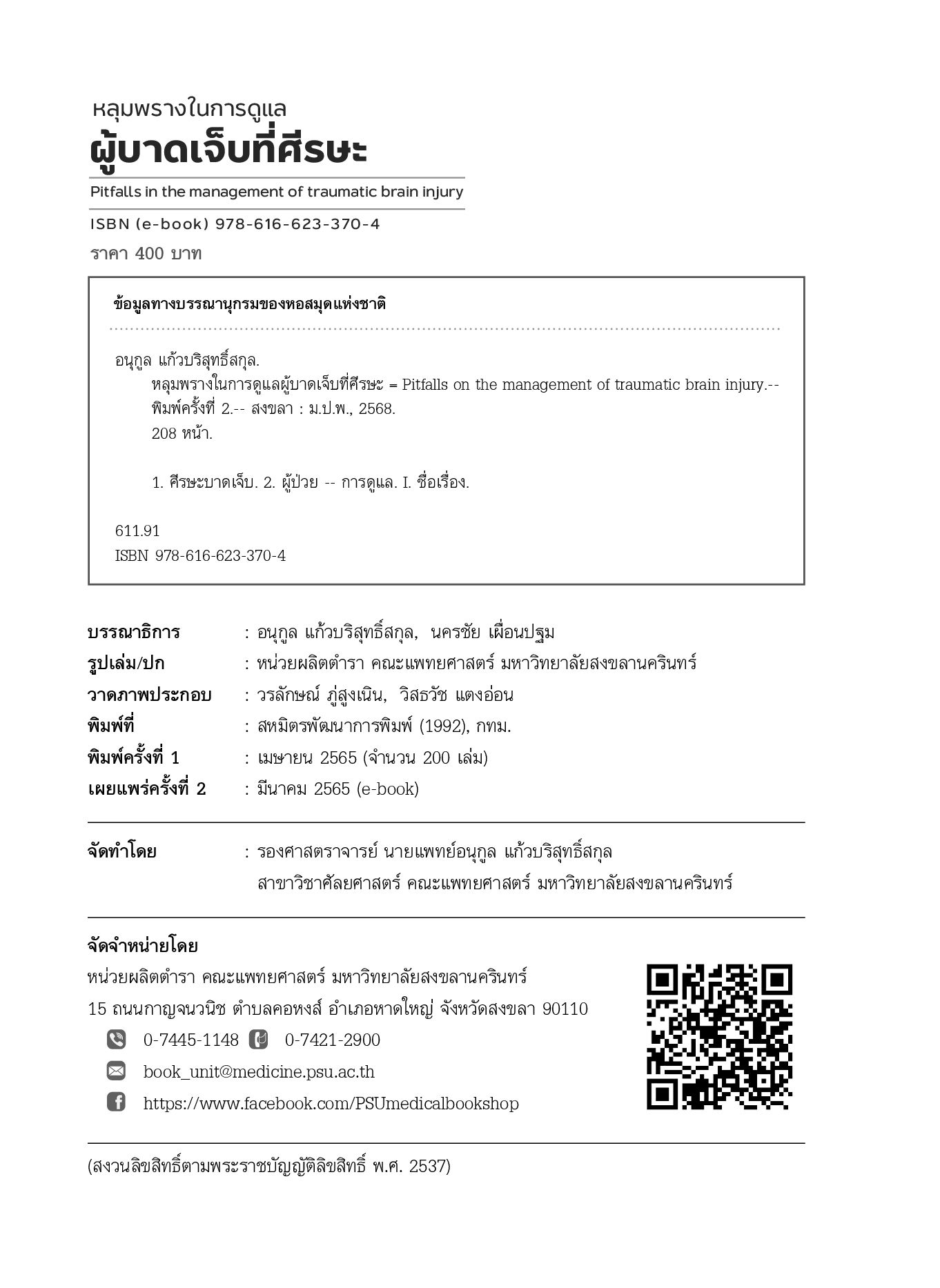- สำนักพิมพ์ : หน่วยผลิตตํารา คณะแพทยศาสตร์ มหาวิทยาลัยสงขลานครินทร์
