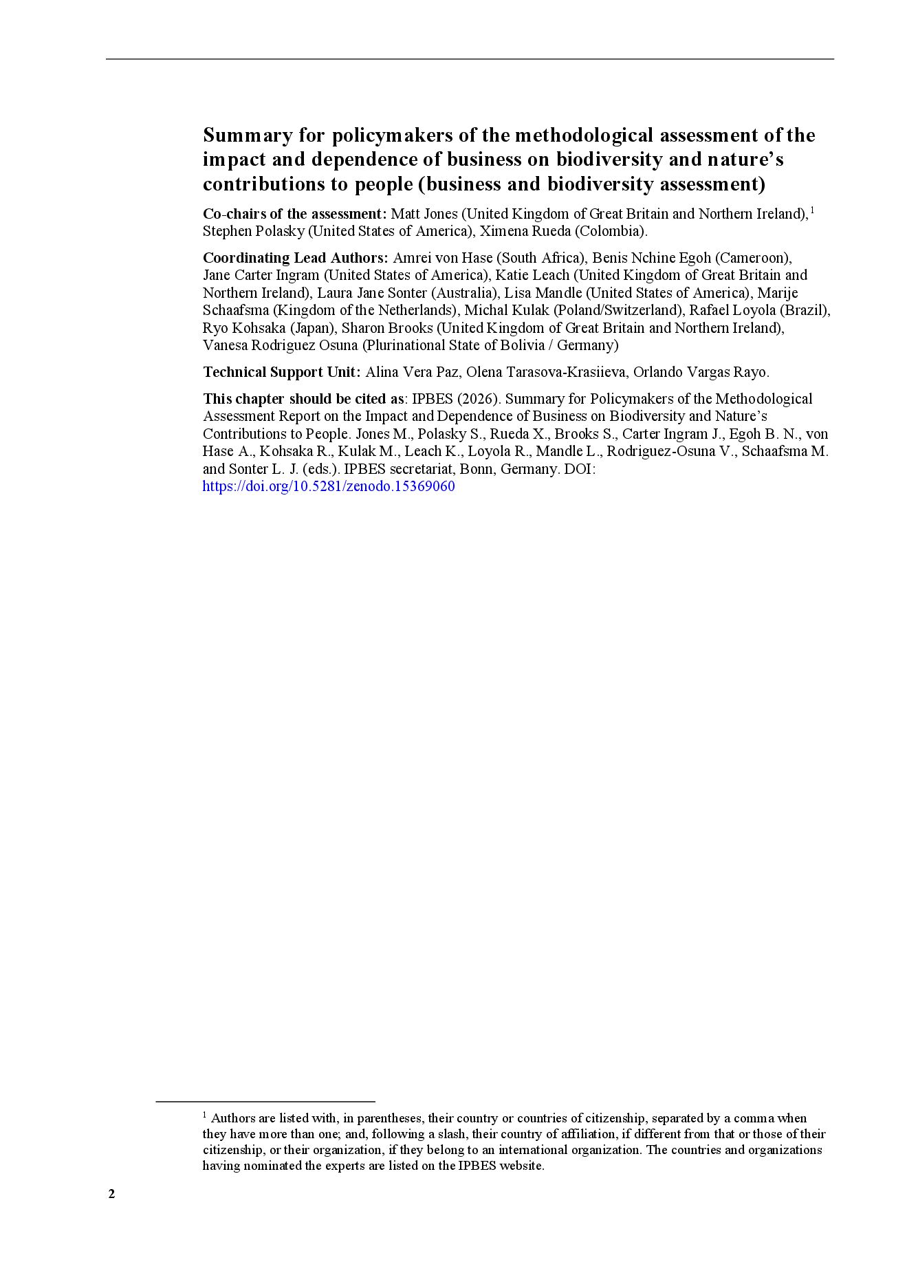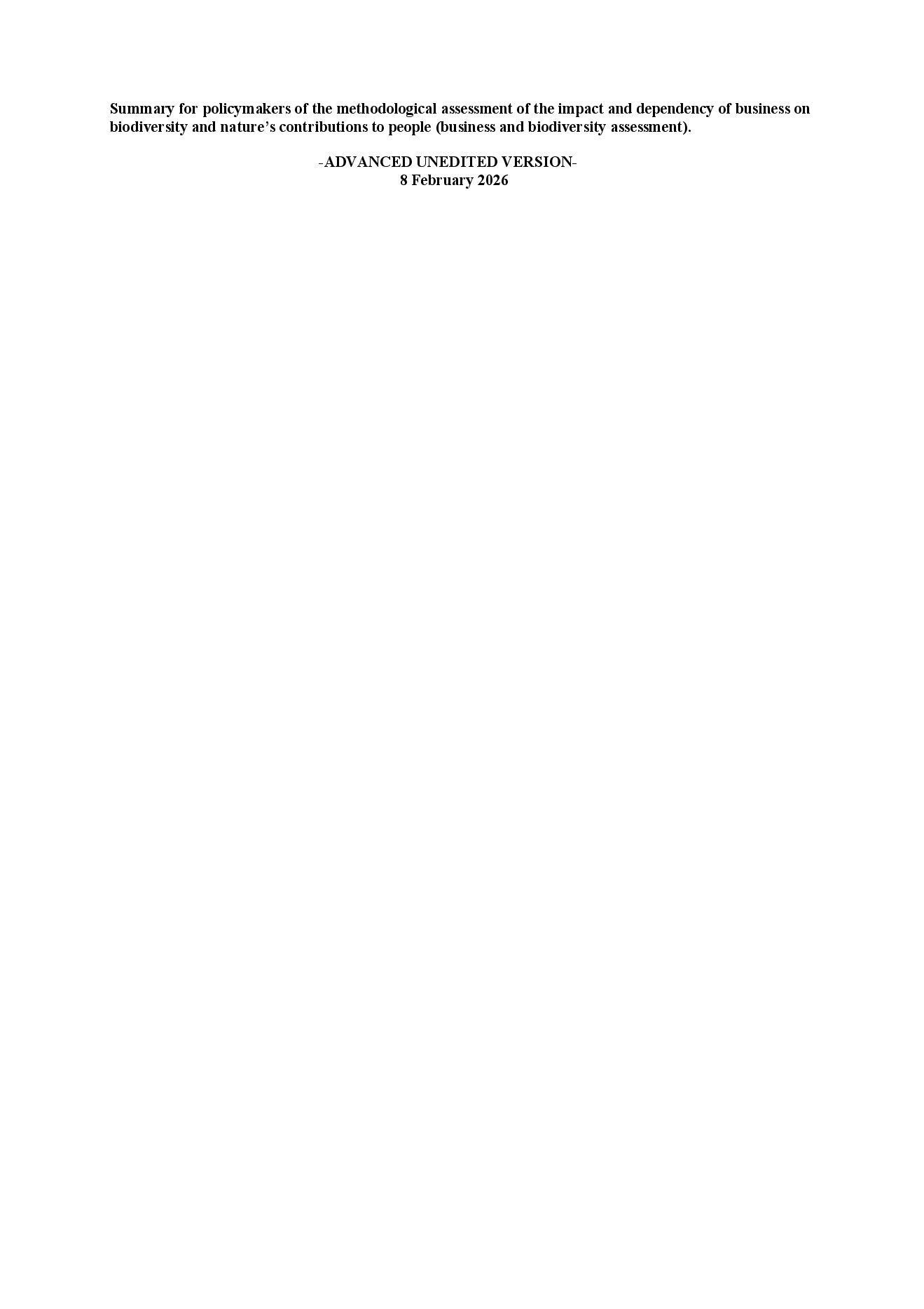 The methodological assessment report on THE IMPACT AND DEPENDENCE OF BUSINESS ON BIODIVERSITY AND NATURE’S CONTRIBUTIONS TO PEOPLE