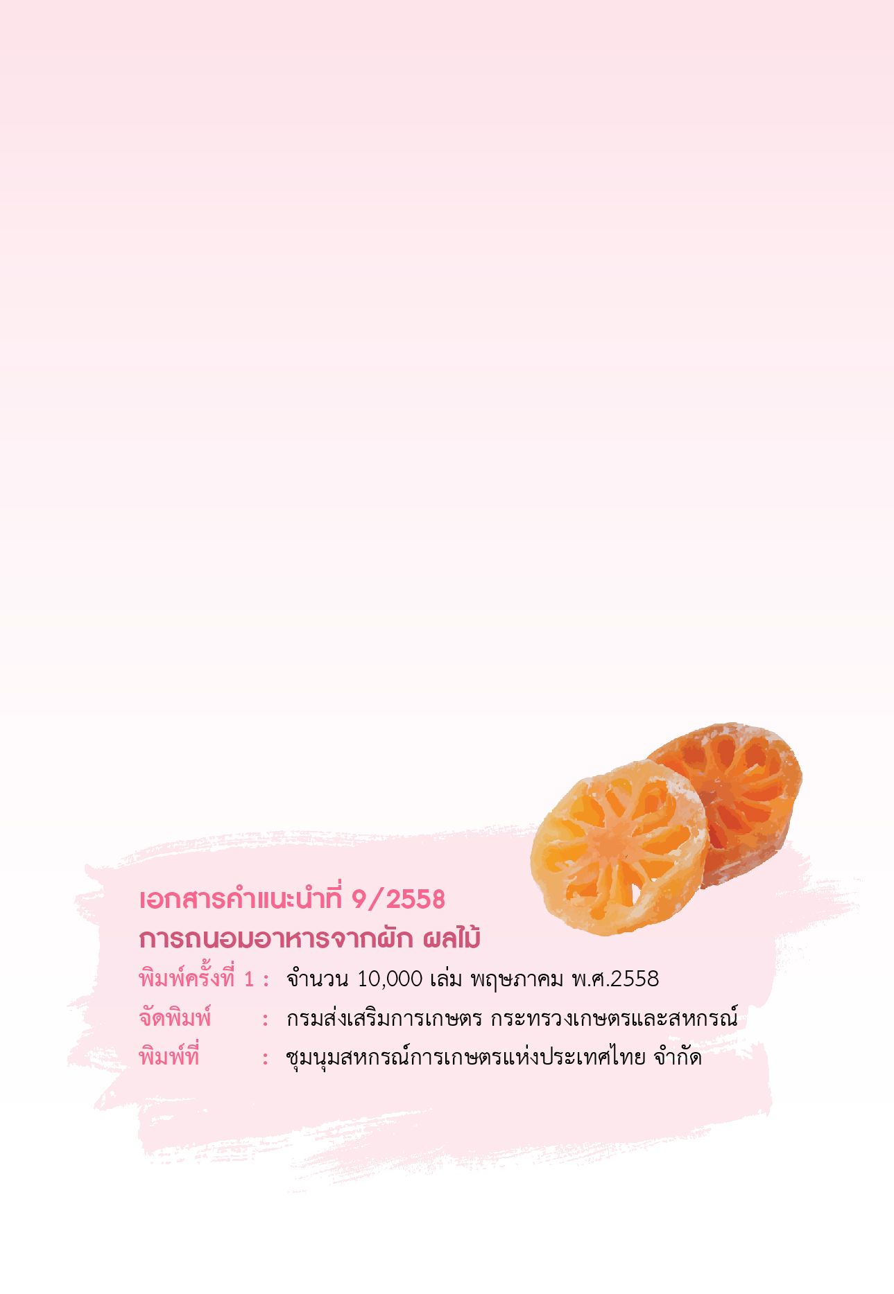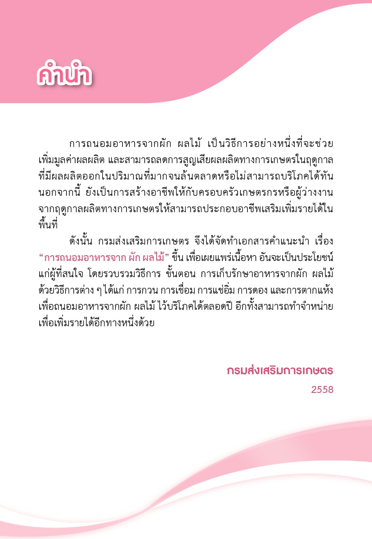 แก่ผู้ที่สนใจ โดยรวบรวมวิธีการ ขั้นตอน การเก็บรักษาอาหารจากผัก ผลไม้