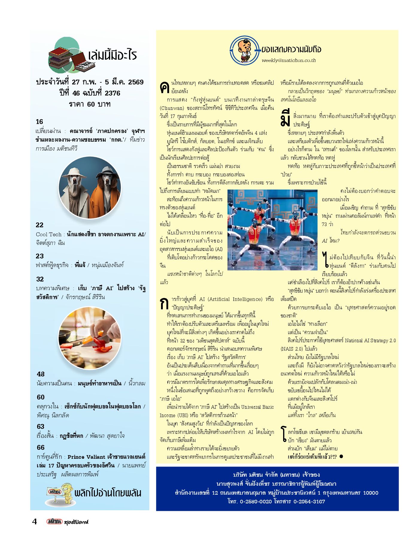 มติชนสุดสัปดาห์ ฉบับ 2376 (27 ก.พ. - 5 มี.ค. 69)