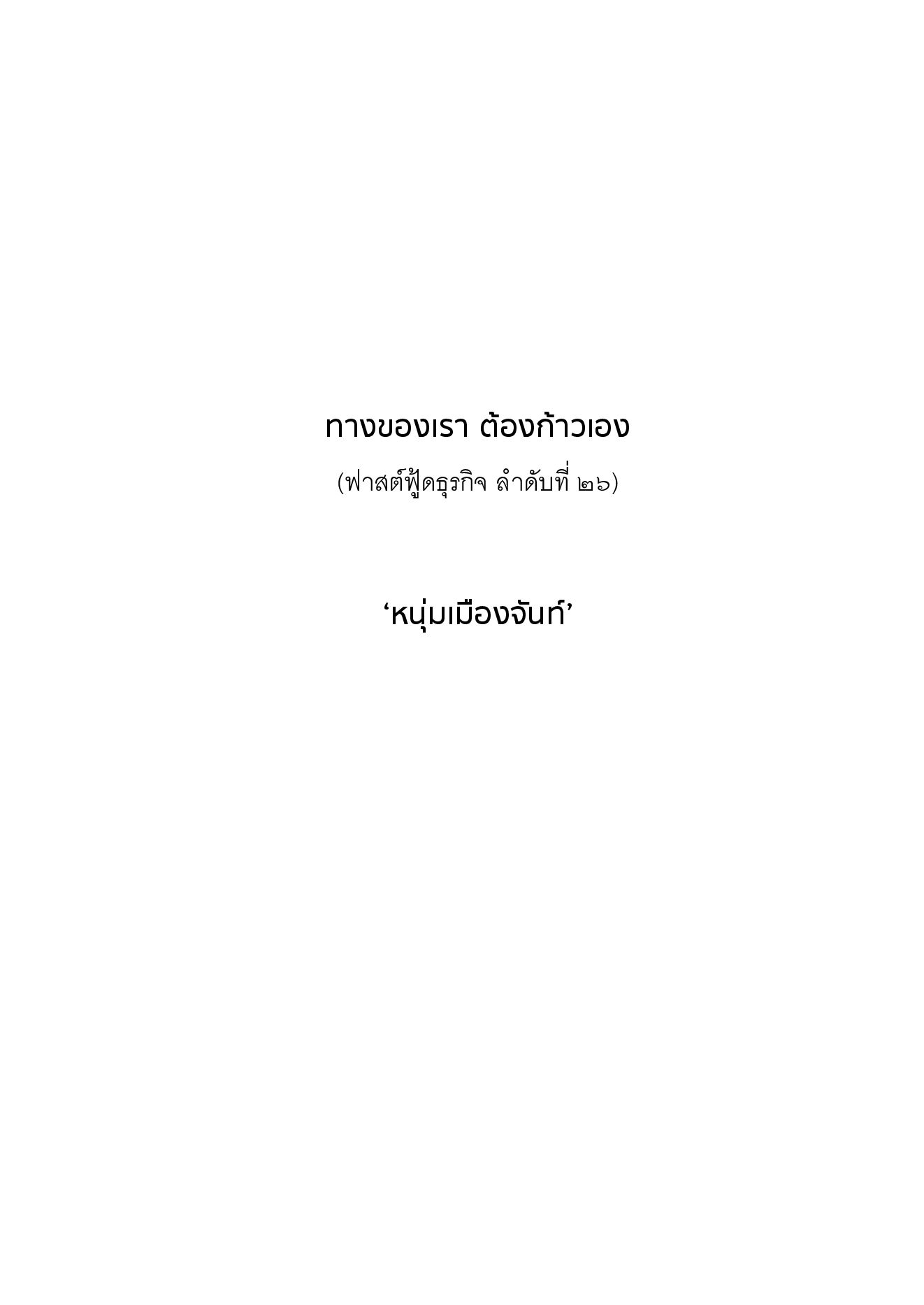 ในวันที่เราตั้งคำถามกับตัวเอง ว่าควรเดินทางไหนต่อเมื่อถึงจุดเปลี่ยนของชีวิต คำว่า “ทางของเรา ต้องก้าวเอง” อาจได้ยินจนชินหู แต่ลึกลงไปในรายละเอียด การ “กล้าเลือก” ทางของตัวเอง เป็นวิธีแก้ปัญหาที่ตรงจุด ‘หนุ่มเมืองจันท์’ หยิบเอาประสบการณ์ ผู้คน เหตุการณ์ที่น่าสนใจมาเล่าอย่างสนุกและกระชับเหมือนเคย เรื่องเล็กๆ บางเรื่อง นำไปสู่ความสำเร็จและความสุขอันยิ่งใหญ่ได้อย่างไม่น่าเชื่อ