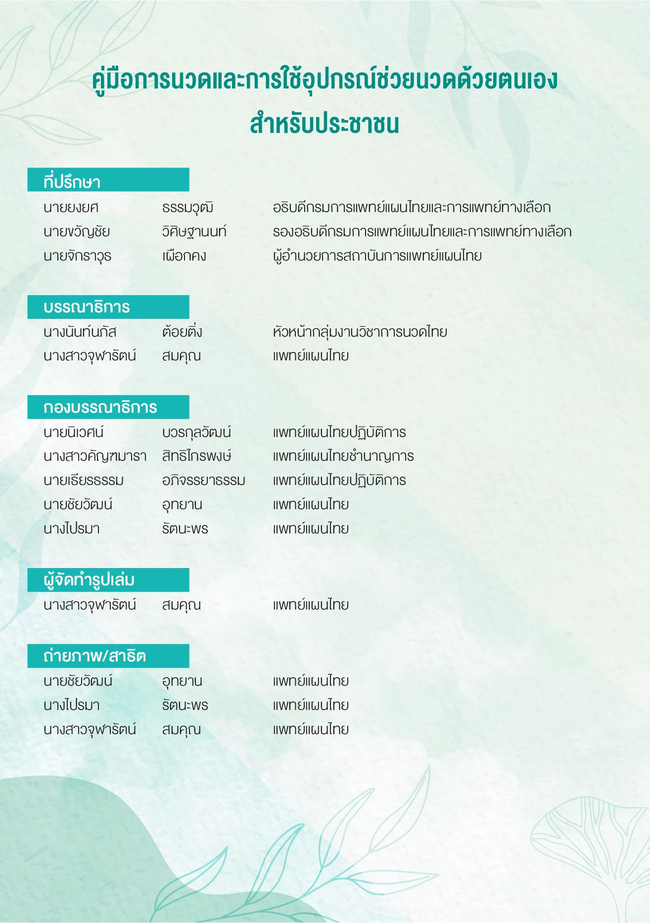- Author : สถาบันการแพทย์แผนไทย กรมการแพทย์แผนไทยและการแพทย์ทางเลือก กระทรวงสาธารณสุข
