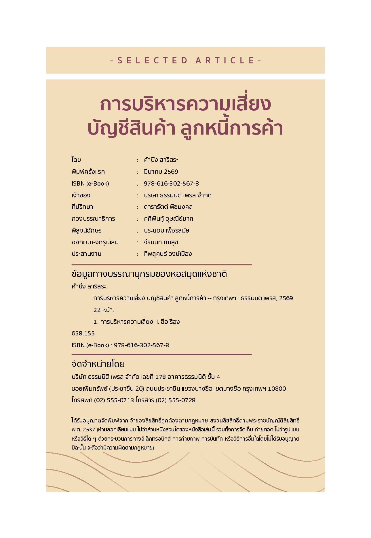 พาผู้อ่านมอง “ความเสี่ยง” อย่างเป็นระบบ ตั้งแต่ความเสี่ยงพื้นฐานที่นักบัญชีมักเผชิญไปจนถึงประเด็นเชิงลึก พร้อมแนวทางจัดการที่นำไปใช้ได้จริงในองค์กร